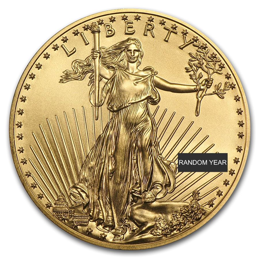 À l’arrière-plan, le soleil se levant derrière le Capitole évoque la puissance économique américaine et l’émergence d’une nouvelle ère de prospérité. À droite de la figure figurent le millésime de la pièce — indiqué en chiffres romains de 1986 à 1991 — ainsi que les initiales d’Augustus Saint-Gaudens. Les 51 étoiles entourant le pourtour représentent les 50 États américains ainsi que le district fédéral de Washington D.C.
